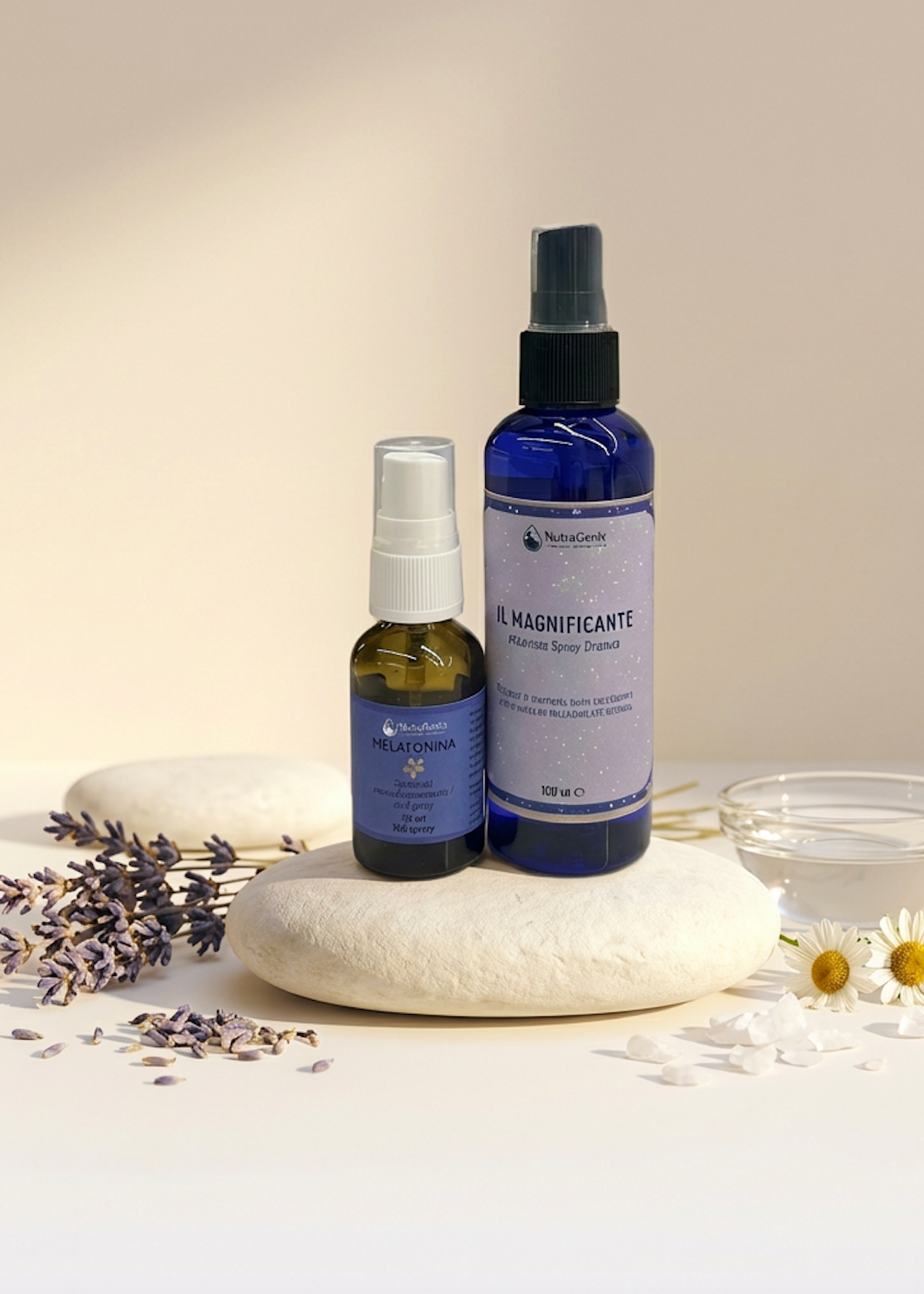 IL MAGNIFICANTE Magnesio Spray Dermico : Rilassa i muscoli, scioglie le tensioni e favorisce un senso di calma. Assorbito direttamente dalla pelle, agisce rapidamente dove serve, preparando corpo e mente al sonno senza affaticare l'apparato digerente.